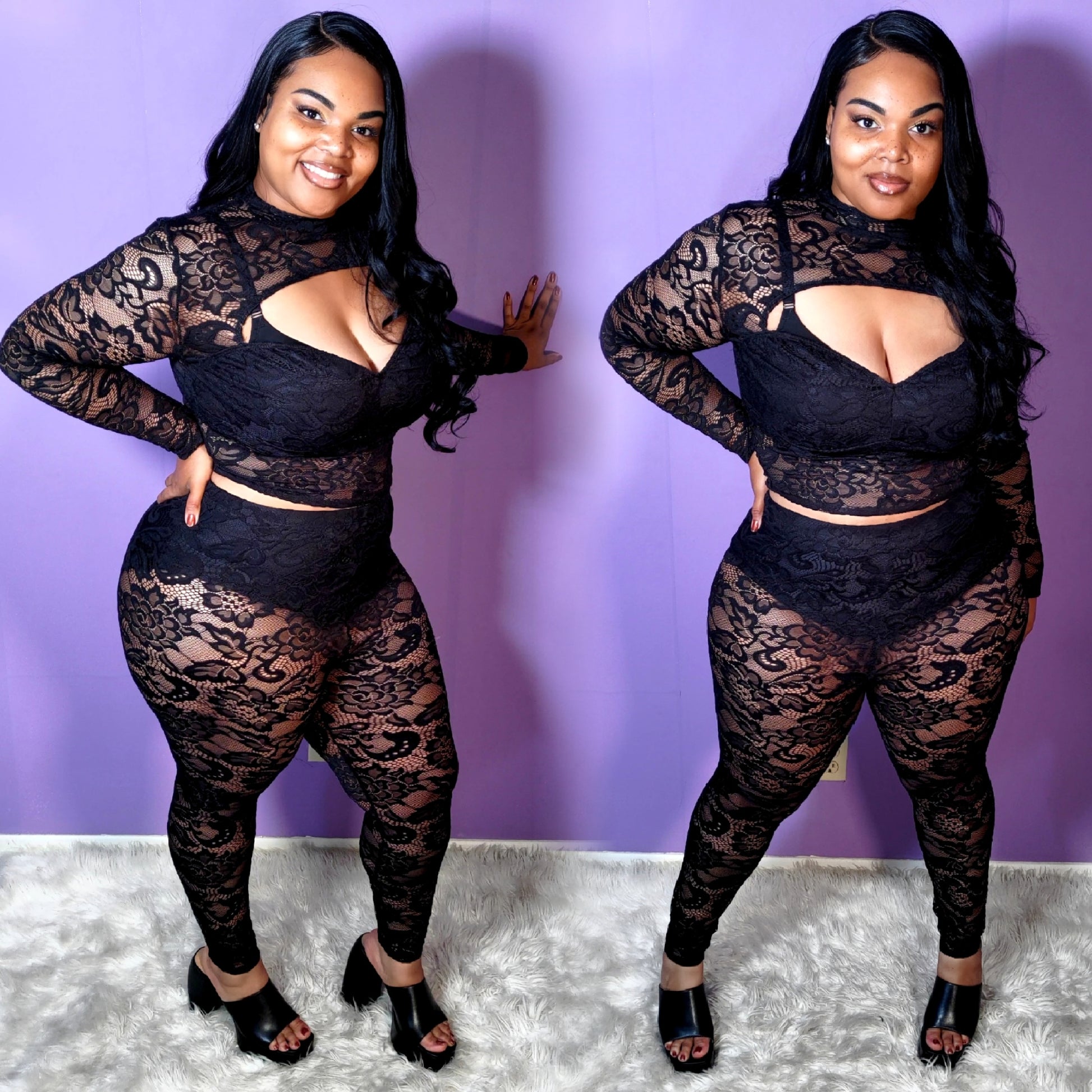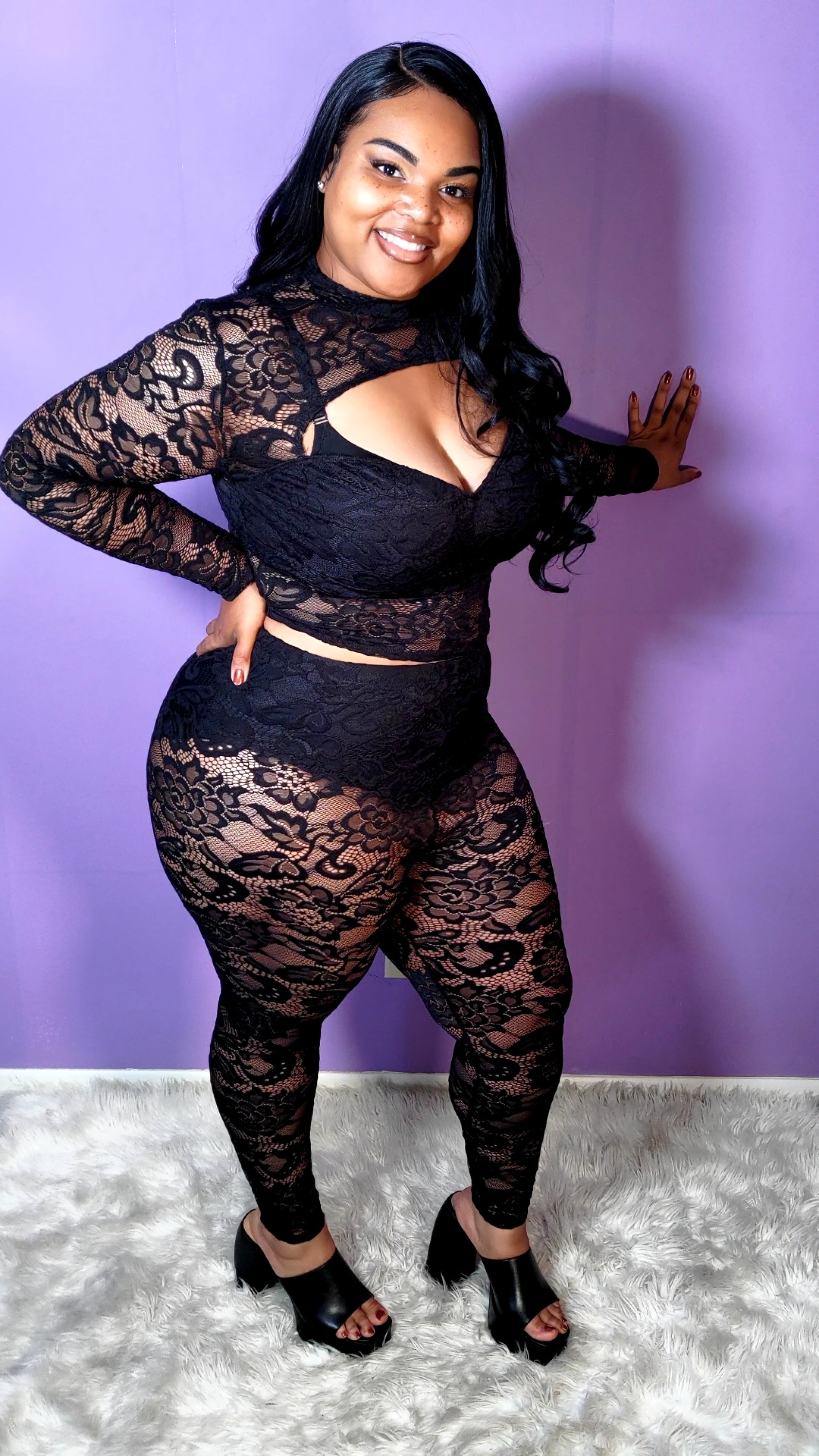 Flaunt your curves in these seductive plus size lace pants and matching top set. With a stretchy lace fabric and comfortable lining, these pants are perfect for a night out. Indulge in your sensual side with this irresistible lace set.